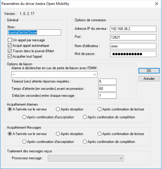 Aastra OM XML : Configuration du driver