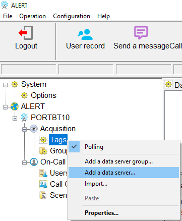 Dans ALERT 4.0, pour ajouter une connexion à un serveur de données, effectuer un clic droit sur "Variables" dans l'arborescence d'ALERT 4.0 :