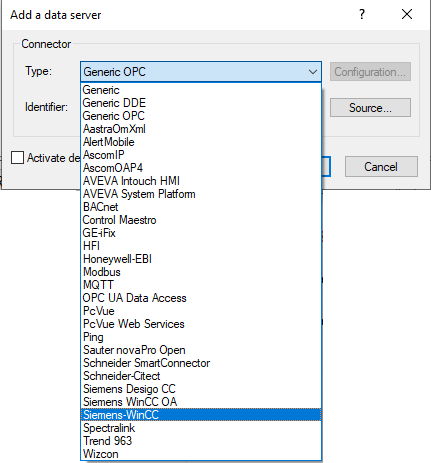 Définir le paramètre "Type" en sélectionnant dans la liste déroulante le connecteur à utiliser :