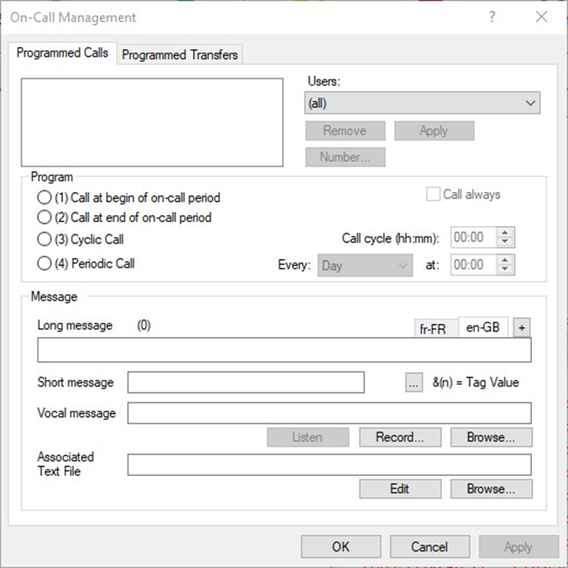 Cette option indique, lorsqu'elle est cochée, que l'appel (cyclique ou périodique) devra être effectué quel que soit l'état d'astreinte de l'opérateur. Si elle n'est pas cochée, l'appel ne sera effectué que pendant les périodes d'astreinte de l'opérateur.