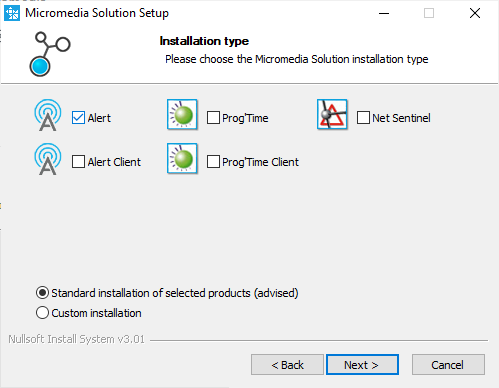 Une installation par défaut est conseillée. Tous les modules sont installés (Drivers, médiateurs, plugins ...). L'activation de chaque élément se fera dans le logiciel.