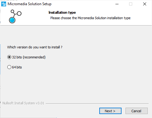 Conservez le choix par défaut (32 bits) sauf besoin particulier. Ceci est valable même sur un Windows 64 bits.