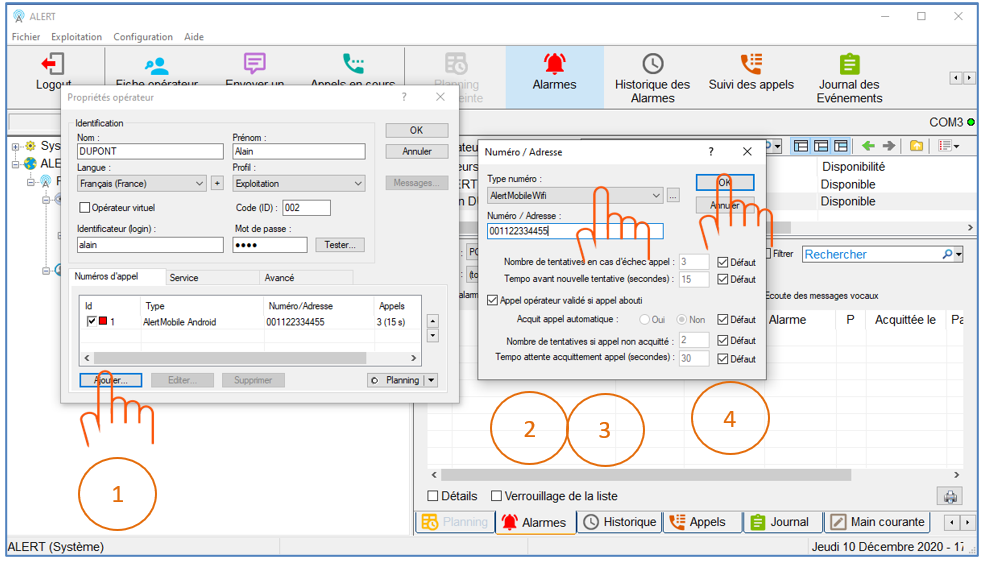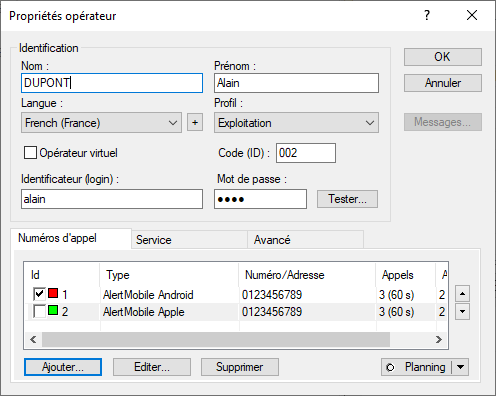 Double cliquer sur un opérateur pour ouvrir la fenêtre Propriété opérateur, puis cliquer sur le bouton Ajouter... en bas à gauche.