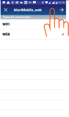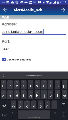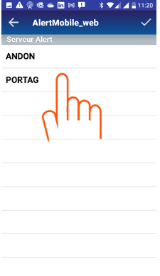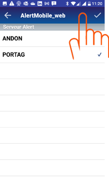 | Saisir l’adresse de AlertGatewayMobile | Sélectionner le serveur ALERT | Valider | Connexion établie |