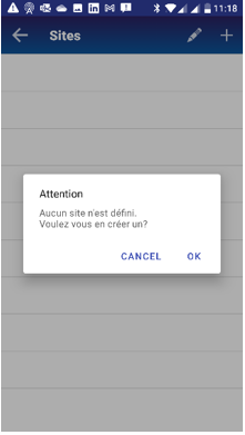 Lors du premier paramétrage de la connexion à ALERT un message (1er écran) vous invite à créer un site.