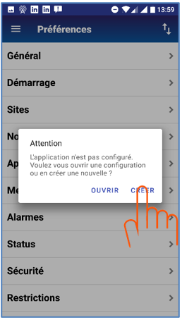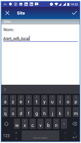 Lors de l’ouverture de l’application AlertMobile pour la première fois il est nécessaire de configurer le site Alert en réseau Wifi auquel votre application AlertMobile sera connectée.