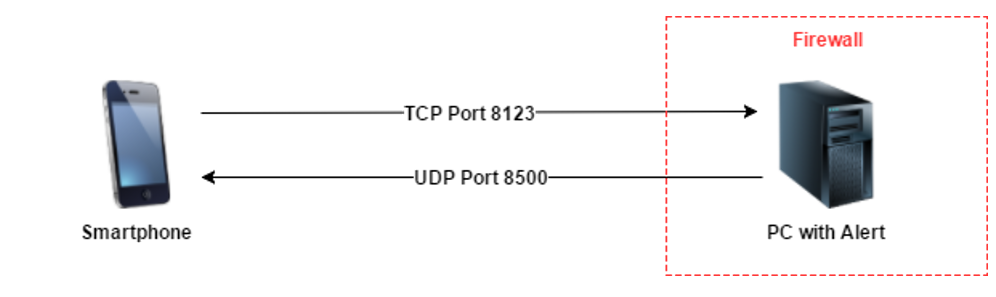 Pour la communication entre ALERT et un smartphone via une connexion WIFI, 2 ports de communication doivent être ouverts.
