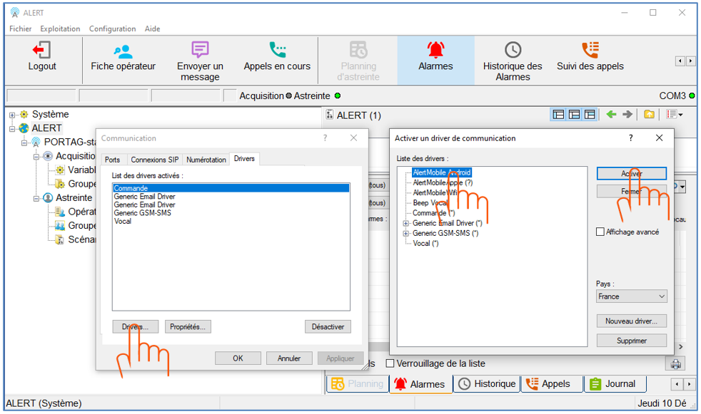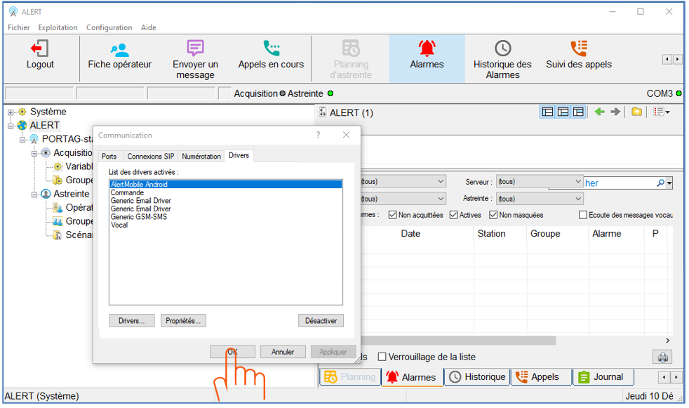 Si vous ne trouvez pas le pilote ALERTMobile Android dans la liste, consulter cette rubrique :