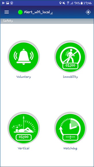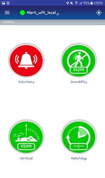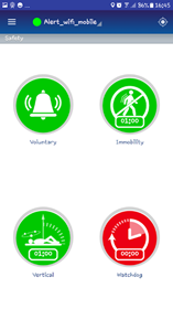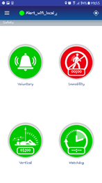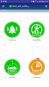 Par une pression sur le bouton Immobilité, un compte à rebours modifiable dans les préférences se déclenche. A l’échéance du compte à rebours si l’immobilité est confirmée, une alarme « immobilité » est déclenchée.