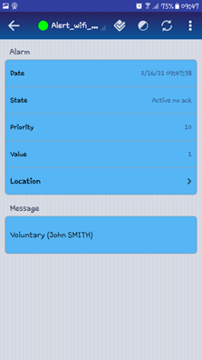 Par une pression maintenue sur le bouton Volontaire, une alarme est générée dans Alert.