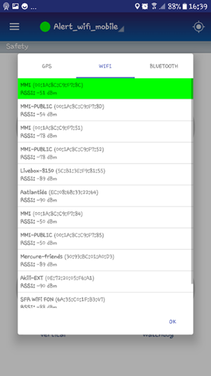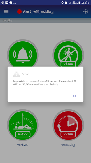 Cette sécurité permet la surveillance de l’opérateur sensé traverser une zone blanche (non couverte par le réseau Wifi ou GSM). Un compte à rebours est paramétré pour déterminer le temps de traversée (ou une opération) en zone blanche. Si la connexion est perdue au-delà du délai une alarme « Surveillance » est générée par Alert. Le paramétrage doit être réalisé avec l’onglet Préférences/sécurité.