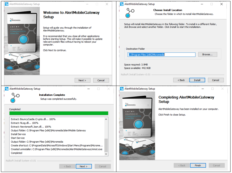 If you don't have the install files, a download link is sent on request. Once downloaded, run AlertMobileGatewaySetup****.exe to start installing AlertMobile Gateway: