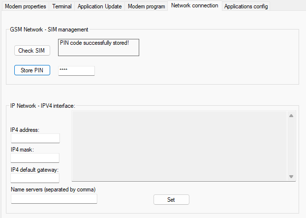 Modem configuration: IP address and PIN code