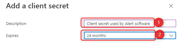Enter a client secret description and a expiration time: