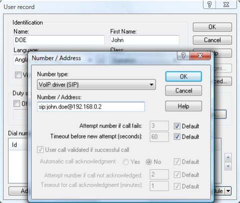 Alert will call address sip:username@192.168.0.1