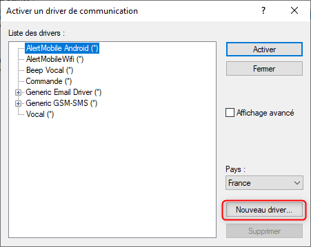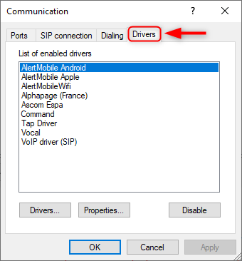 Le logiciel ALERT active quelques medias de communication lors de l'installation, si on souhaite en ajouter il faudra tout d'abord installer et activer le driver de communication correspondant.