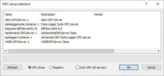 Click on the “...” button located on the right of the “OPC server” field in order to display the list of remote OPC servers: