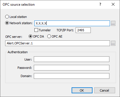In the field next to "Network station", enter the IP address or the computer name of "ALERT Tunneler" module host.