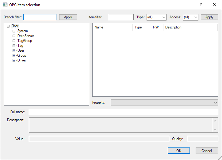 | Successful connection to OPC server | Connected to OPC DA server "OPC Server Name" |