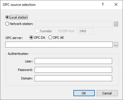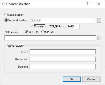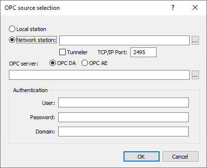 Select the type of OPC server to use using the “OPC DA” or “OPC AE” radio button