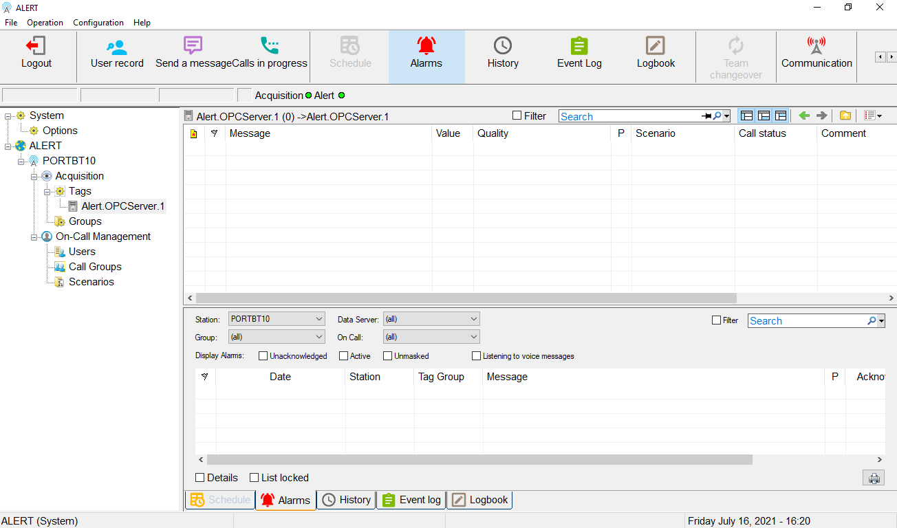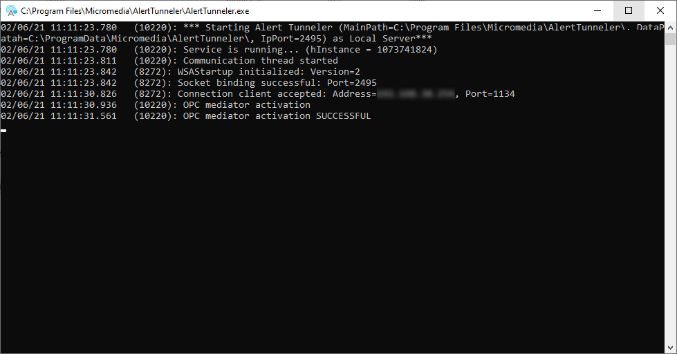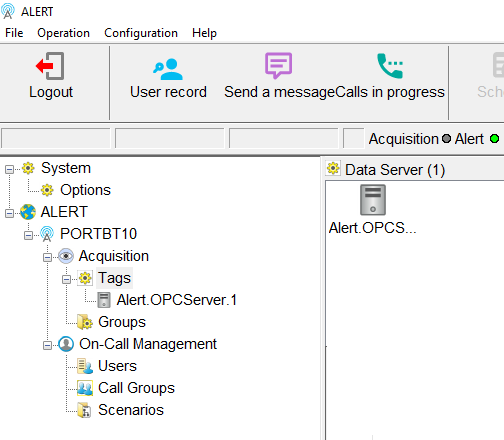 When a Tag is add in ALERT, the " ALERT Tunneler " module will display the connection attempt to the OPC server in its Log (Terminal window)