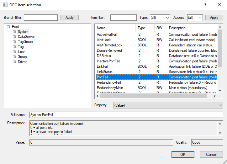 Select the item to be monitored, then click on "OK" button: