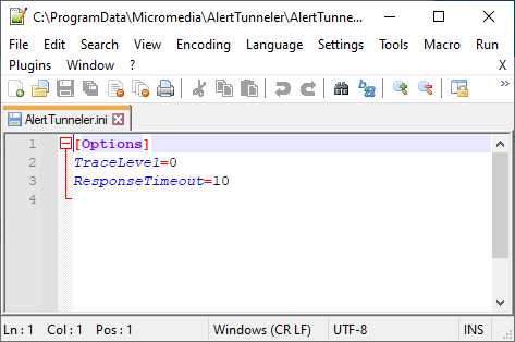 2. Configuration d’« Alert Tunneler.ini » :