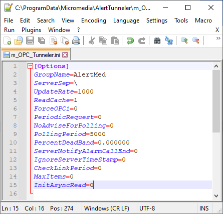 3. Configuration d’ « m_OPC_Tunneler.ini » :