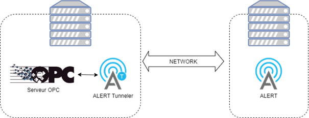 « ALERT Tunneler » est déployé sur le poste hébergeant le serveur OPC afin de mettre à disposition les variables pour le logiciel ALERT distant.