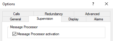 Ouvrir la fenêtre des options (Configuration->Options). Selectionner l'onglet Supervision et cocher l'option Activation processeur Message.