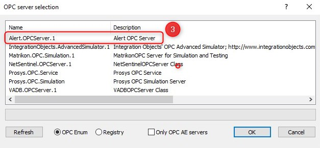 Ajouter un nouveau serveur de données (Generic OPC) et dans source... choisir Alert.OPCServer.1