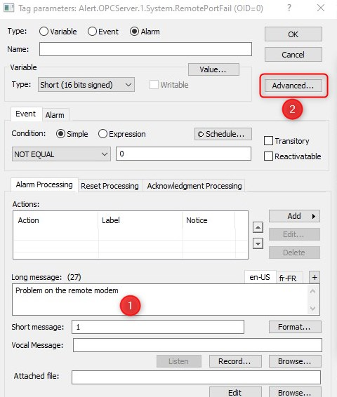 3 variables peuvent être définis dans ALERT sur chaque poste dans ALERT pour surveiller le