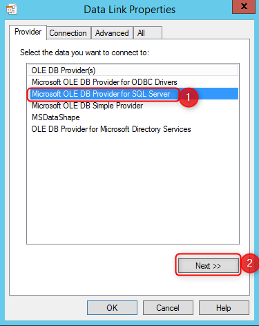 Dans la nouvelle fenêtre, sélectionnez l'onglet "Provider" et choisissez "Microsoft OLE DB Provider for SQL Server".