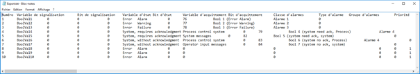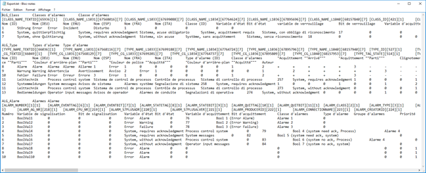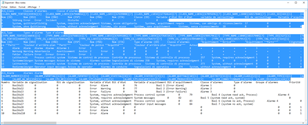 Il en est de même pour le fichier d’exportation des alarmes qui s’obtient à partir du module "Alarm Logging" de WinCC.