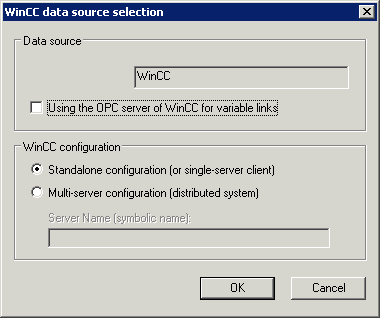 L'option "Utiliser le serveur OPC WinCC pour les liaisons avec les variables" permet d'interroger les variables du système WinCC à travers le protocole OPC.